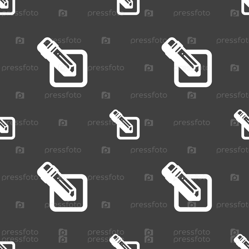 Карандаш значок знак. Бесшовный узор на сером фоне. Вектор