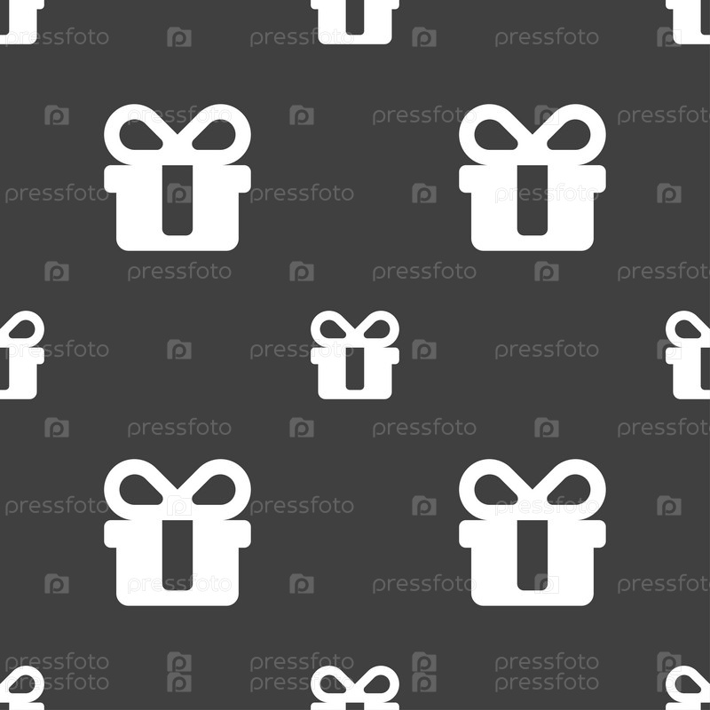 Подарок значок знак. Бесшовный узор на сером фоне. Вектор