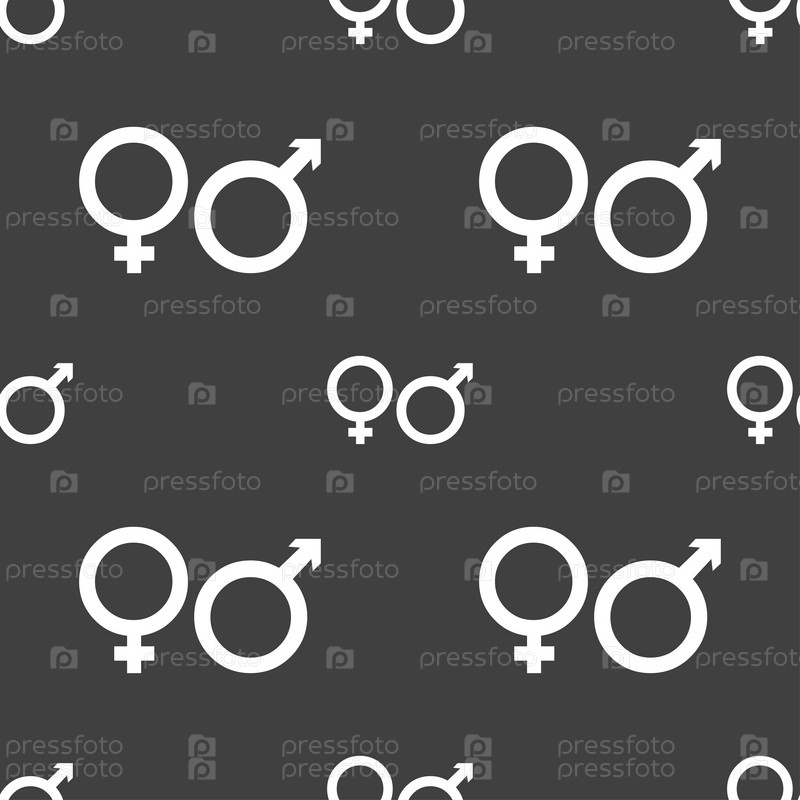 Мужские и женские значок знак. Бесшовный узор на сером фоне. Вектор