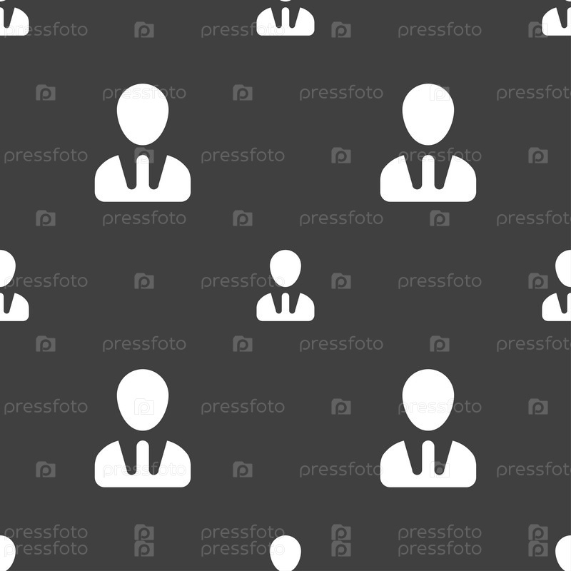 Значок знак мужской силуэт. Бесшовный узор на сером фоне. Вектор