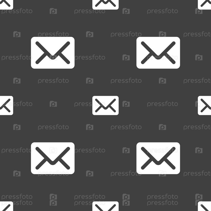 Почта, конверт, письмо значок знак. Бесшовный узор на сером фоне. Вектор