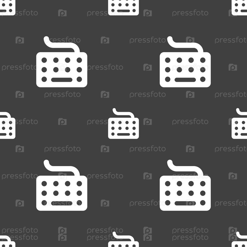 Значок клавиатуры знак. Бесшовный узор на сером фоне. Вектор