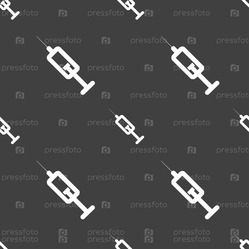 Шприц значок знак. Бесшовный узор на сером фоне. Вектор