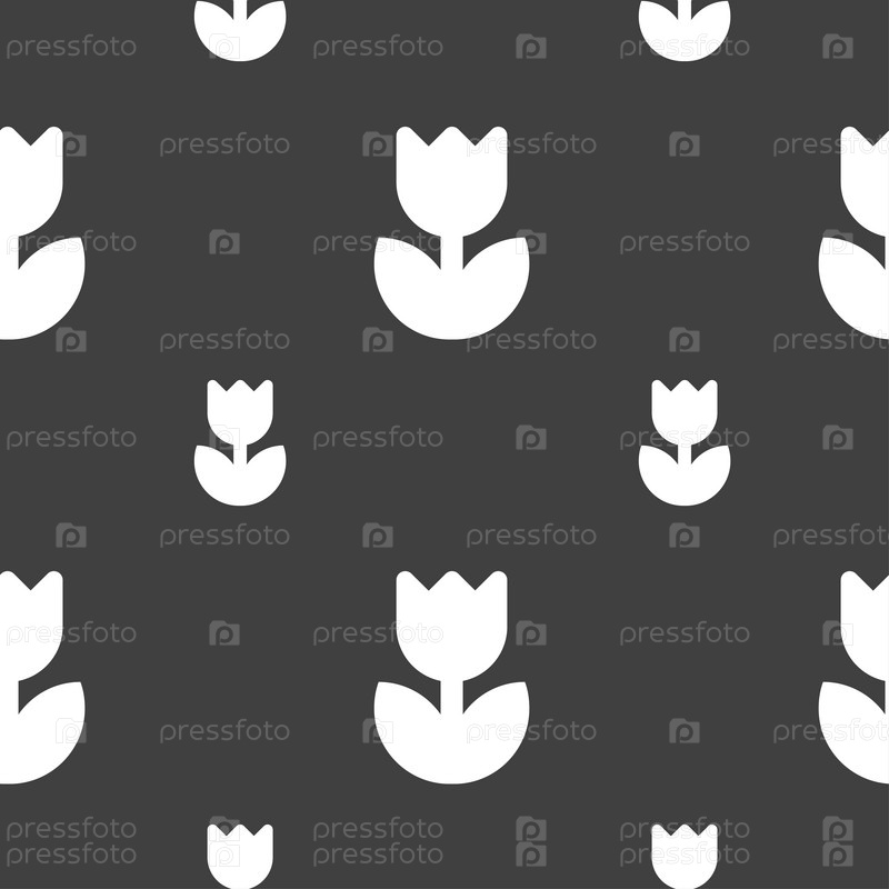 Цветок, Роза значок знак. Бесшовный узор на сером фоне. Вектор