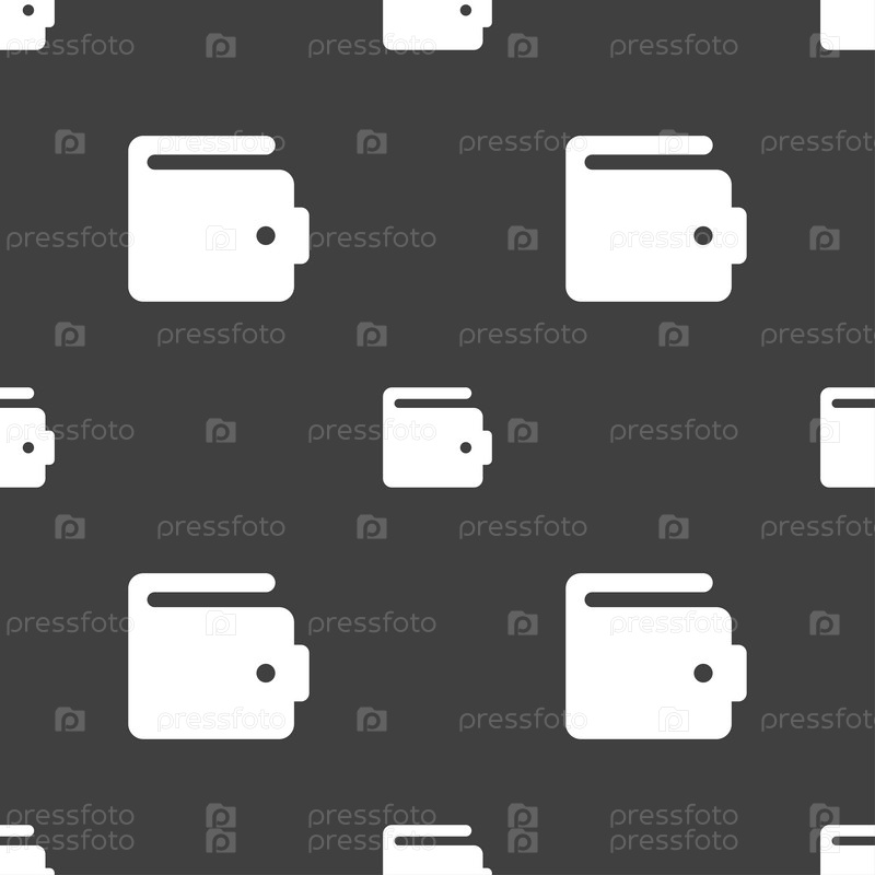 Кошелек значок знак. Бесшовный узор на сером фоне. Вектор