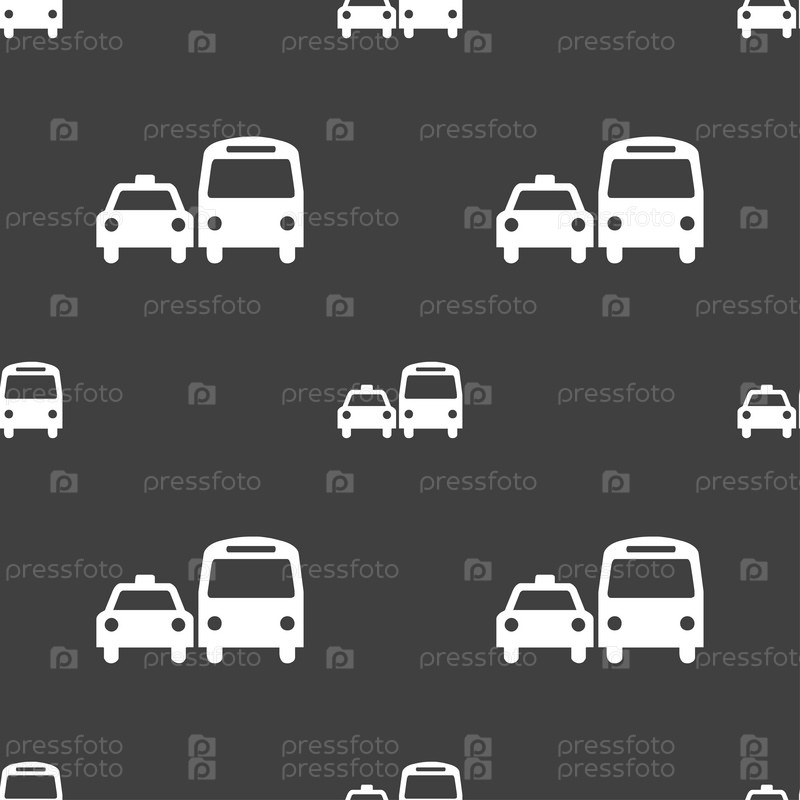 Такси значок знак. Бесшовный узор на сером фоне. Вектор