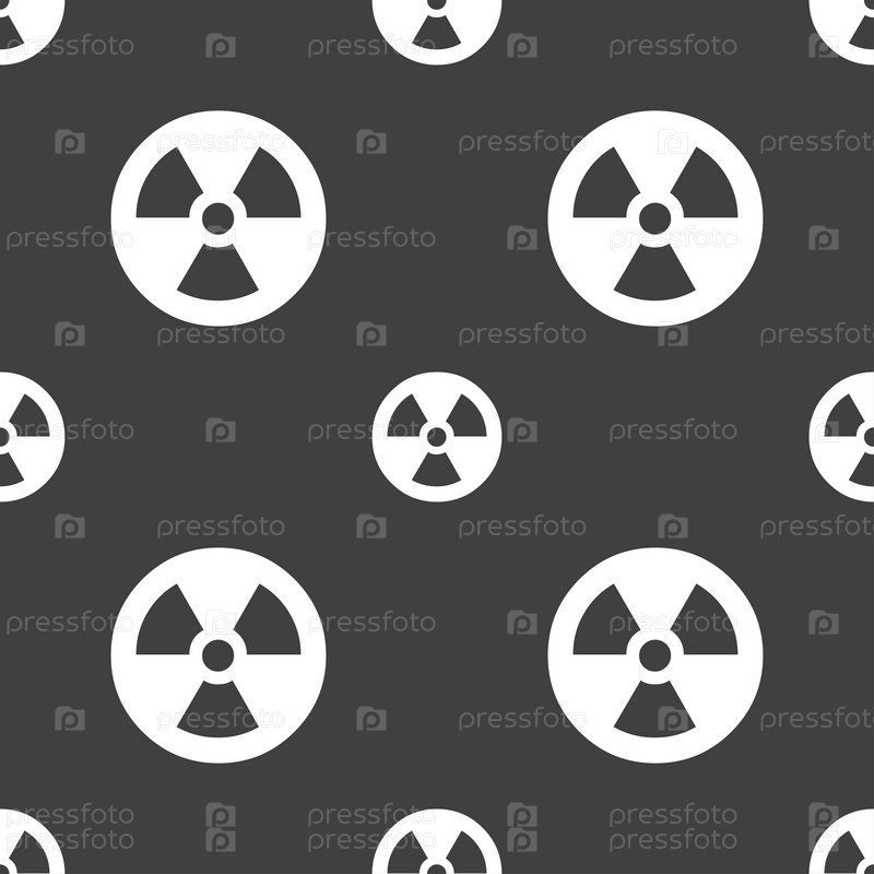 Значок знак радиации. Бесшовный узор на сером фоне. Вектор