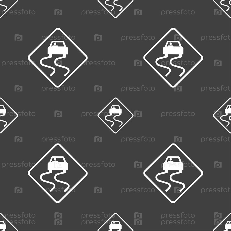 Дорожный знак скользкой значок. Бесшовный узор на сером фоне. Вектор