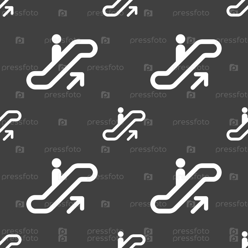 Лифт, эскалатор, лестница значок знак. Бесшовный узор на сером фоне. Вектор