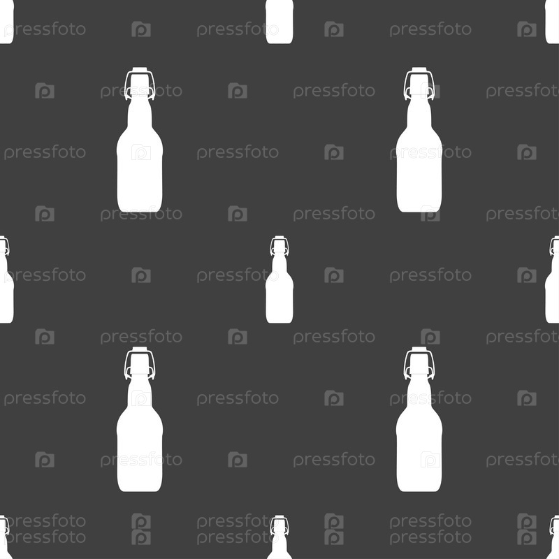 Бутылка значок знак. Бесшовный узор на сером фоне. Вектор