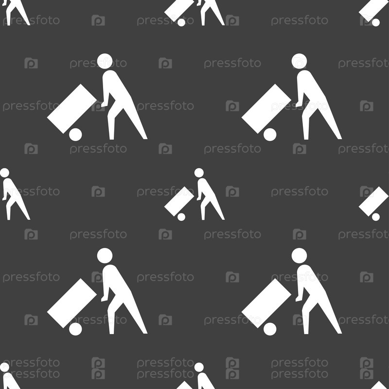 Погрузчик значок знак. Бесшовный узор на сером фоне. Вектор