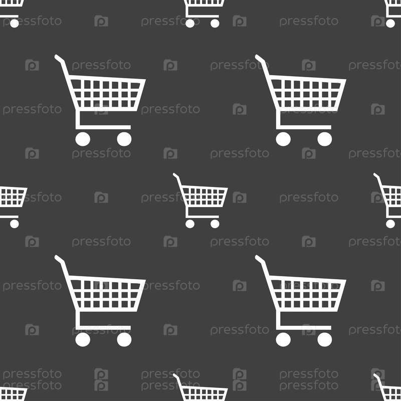 Торговый знак значок Корзина. Бесшовный узор на сером фоне. Вектор