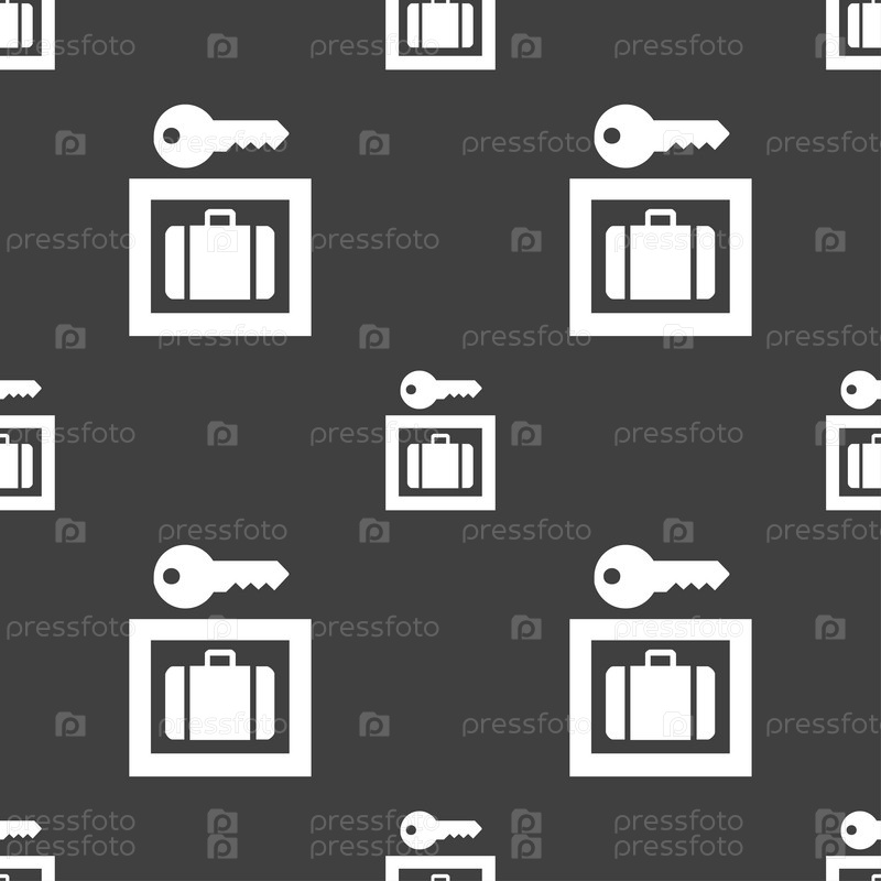 Камера хранения значок знак. Бесшовный узор на сером фоне. Вектор
