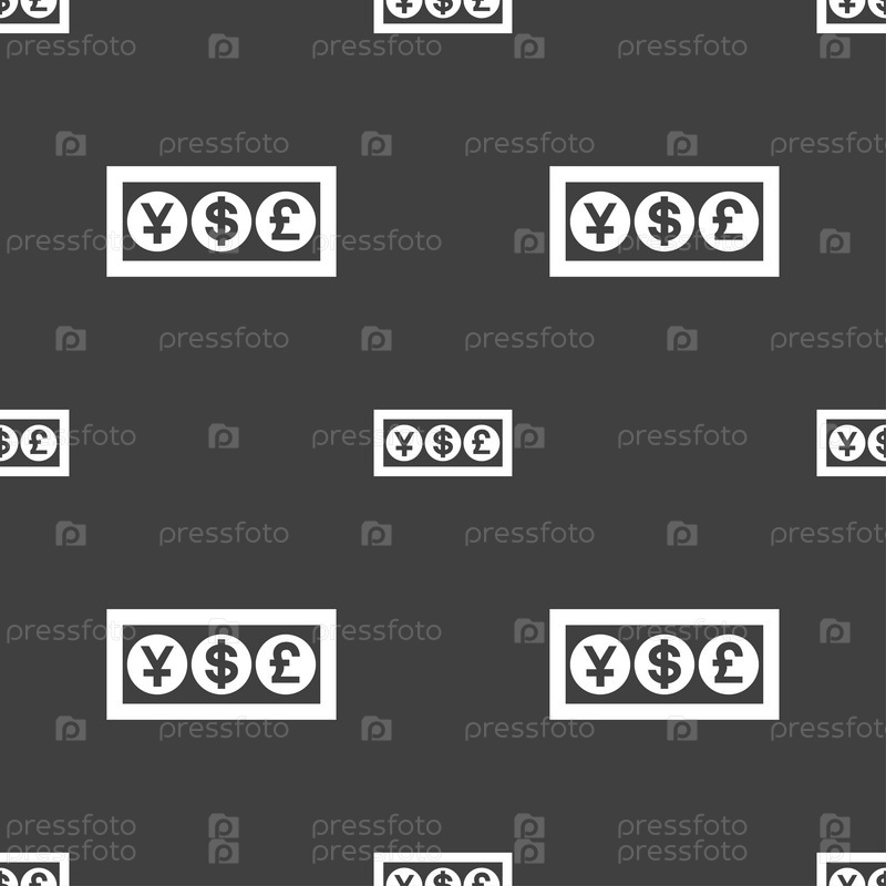 Знак значок валюты наличными. Бесшовный узор на сером фоне. Вектор