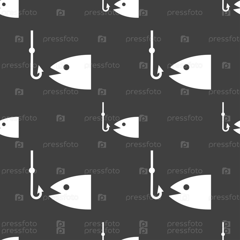 Рыбалка значок знак. Бесшовный узор на сером фоне. Вектор