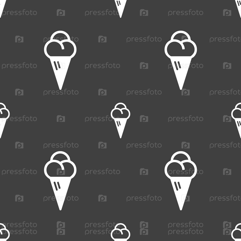 Мороженого значок знак. Бесшовный узор на сером фоне. Вектор