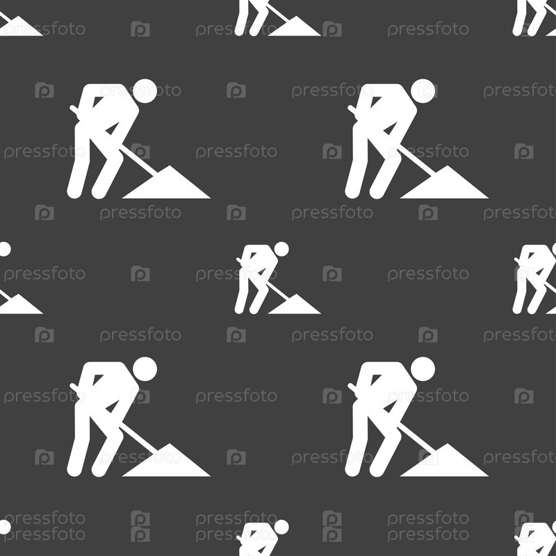 Ремонт дороги, строительные работы значок знак. Бесшовный узор на сером фоне. Вектор
