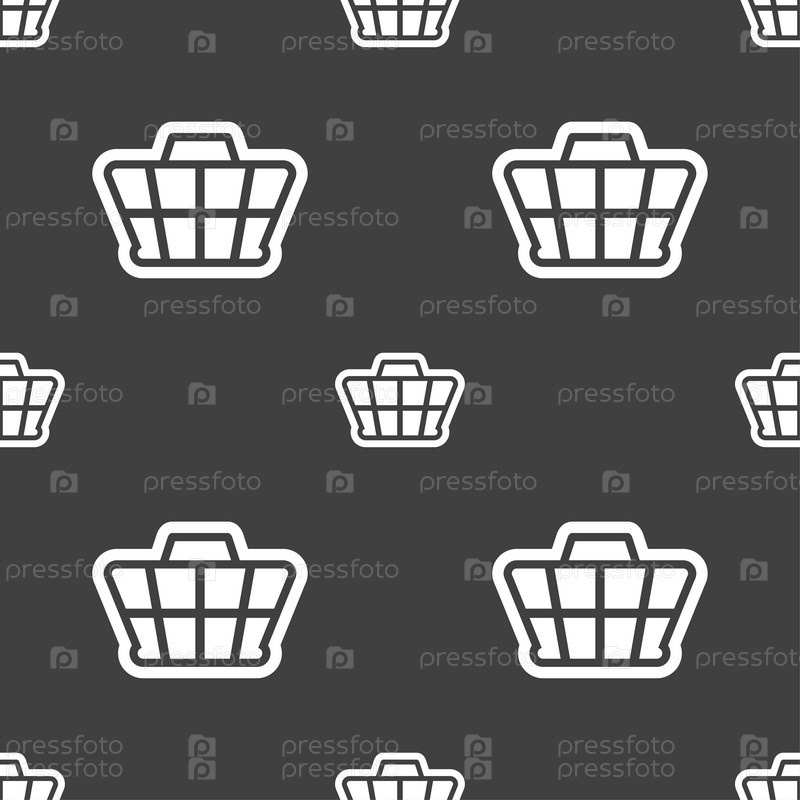 Торговый знак значок Корзина. Бесшовный узор на сером фоне. Вектор