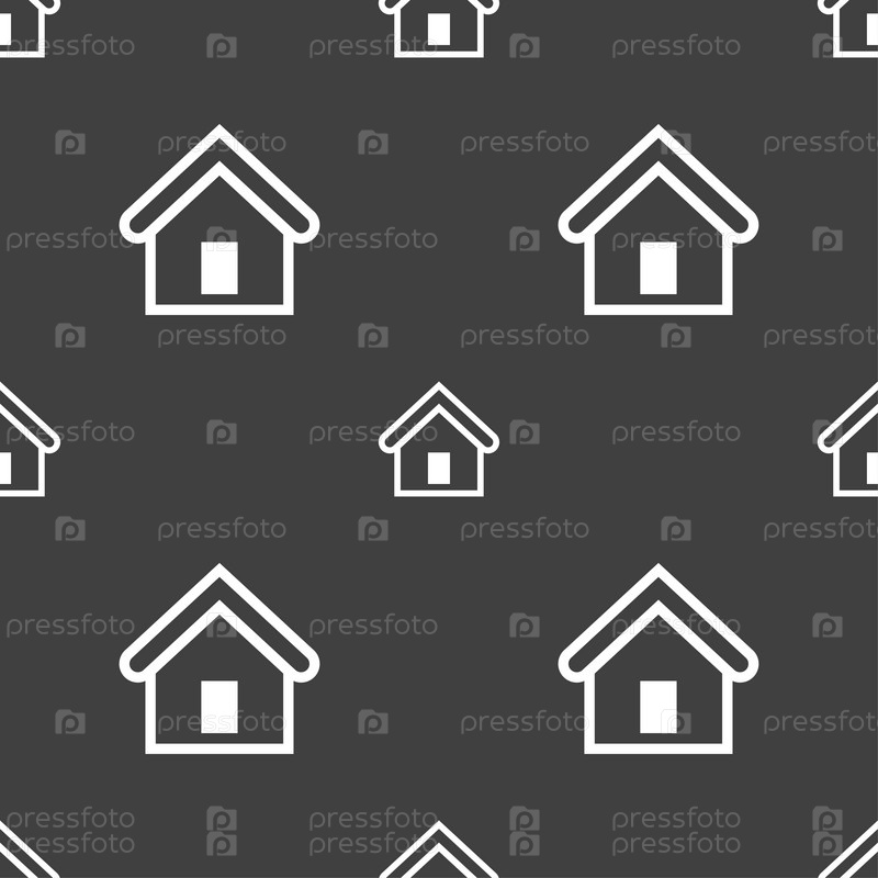 Дом значок знак. Бесшовный узор на сером фоне. Вектор