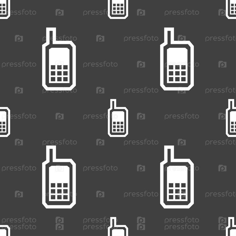 Мобильный телефон значок знак. Бесшовный узор на сером фоне. Вектор