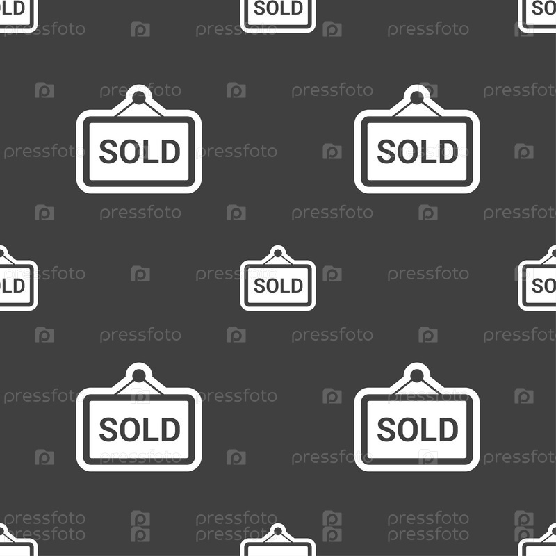 Продано значок знак. Бесшовный узор на сером фоне. Вектор