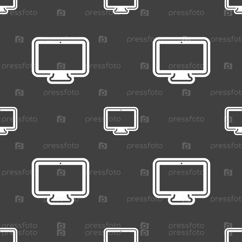 Монитор значок знак. Бесшовный узор на сером фоне. Вектор