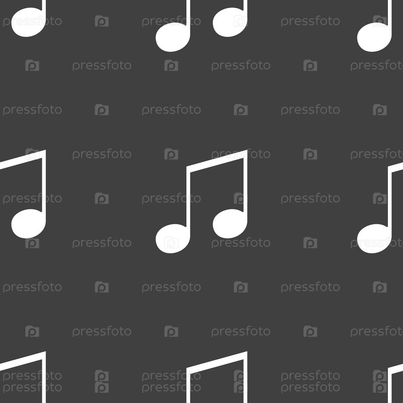 Ноты, музыка, рингтон значок знак. Бесшовный узор на сером фоне. Вектор