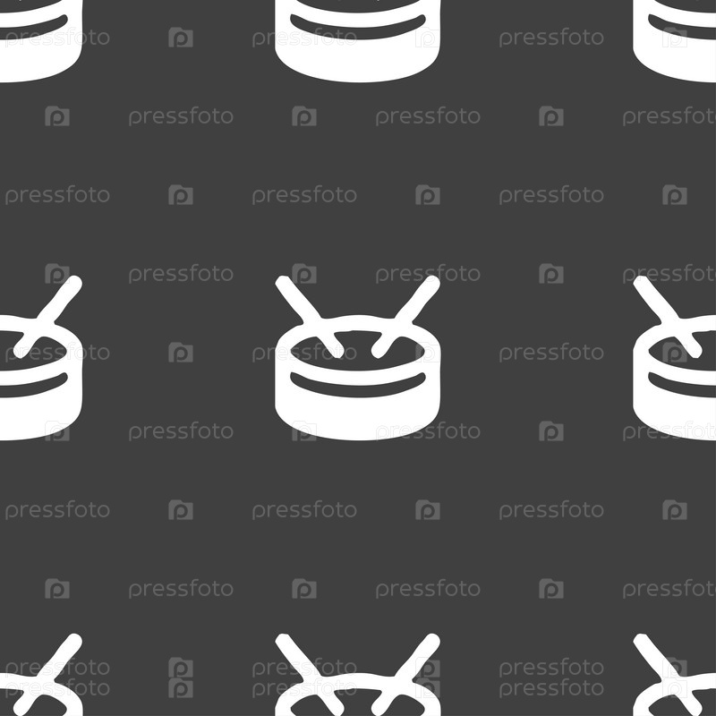 Барабан значок знак. Бесшовный узор на сером фоне. Вектор