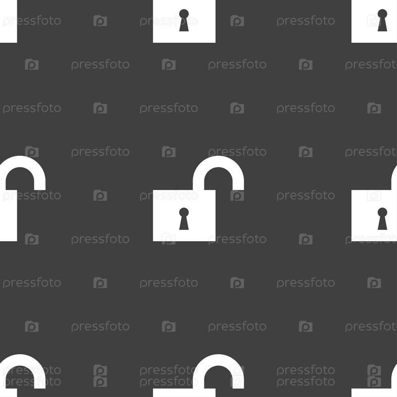 Открытый замок значок знак. Бесшовный узор на сером фоне. Вектор