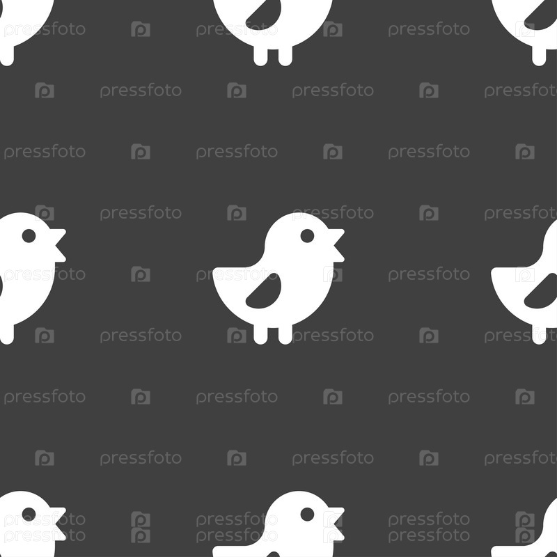 Курица, птица значок знак. Бесшовный узор на сером фоне. Вектор
