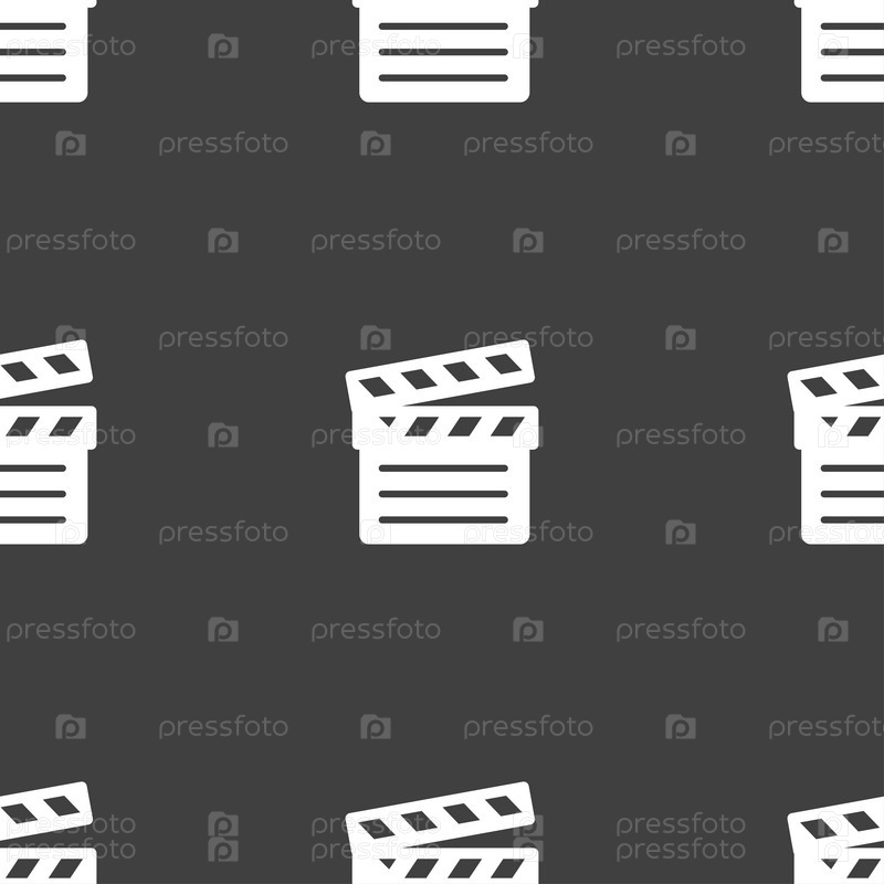 Кино Клаппер значок знак. Бесшовный узор на сером фоне. Вектор