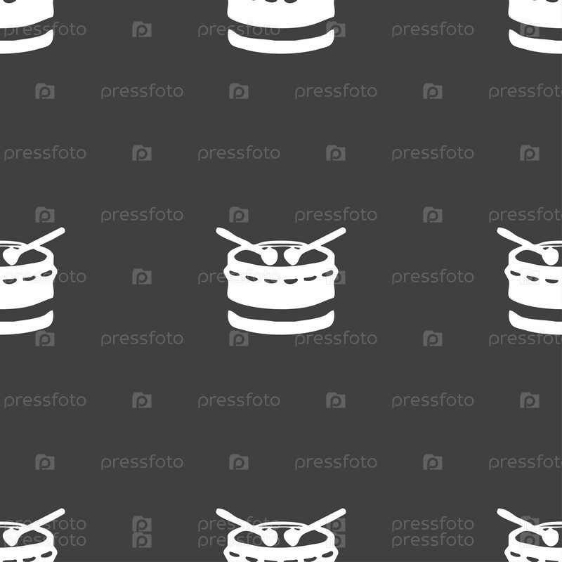 Барабан значок знак. Бесшовный узор на сером фоне. Вектор