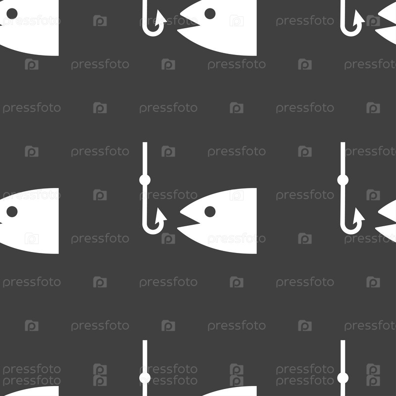 Рыбалка значок знак. Бесшовный узор на сером фоне. Вектор