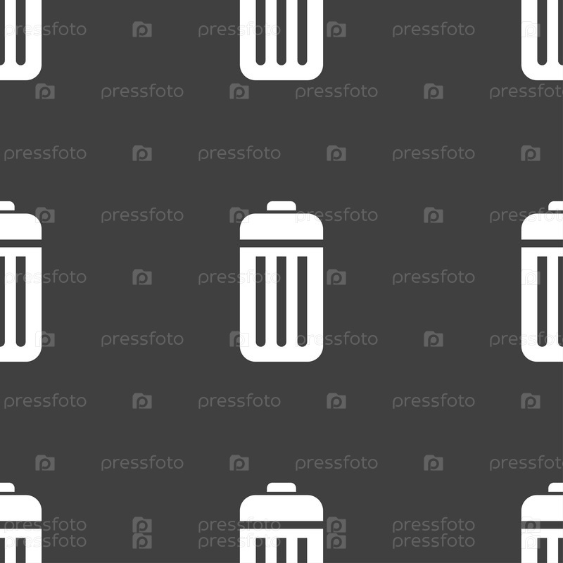 Знак значок корзины. Бесшовный узор на сером фоне. Вектор