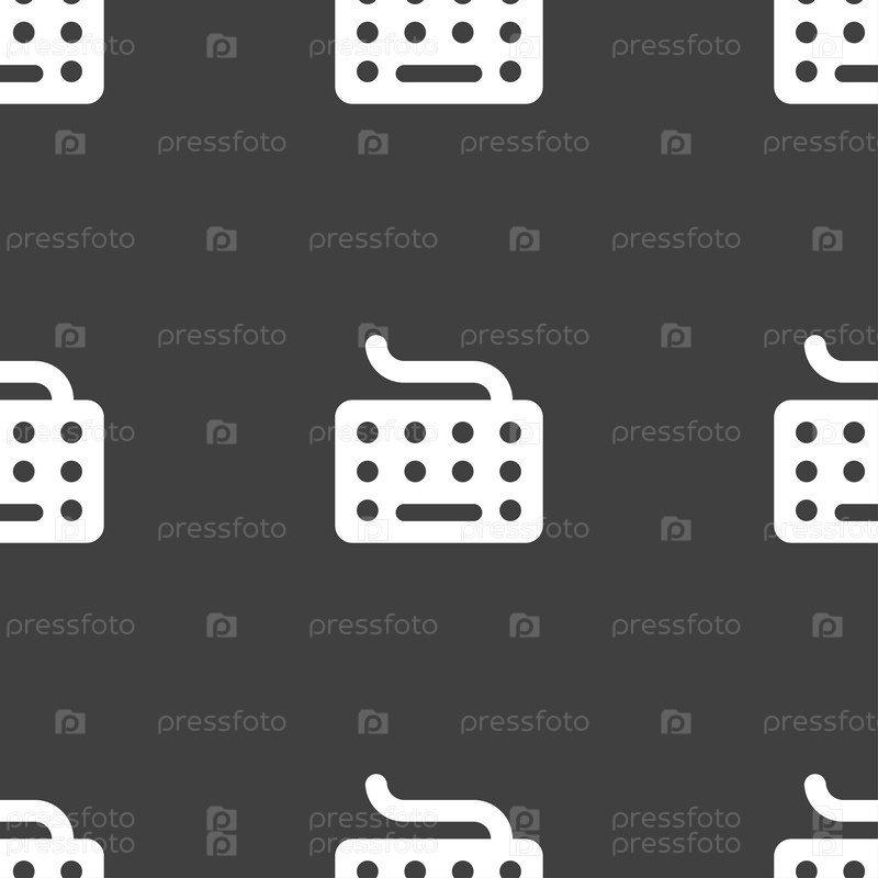 Значок клавиатуры знак. Бесшовный узор на сером фоне. Вектор