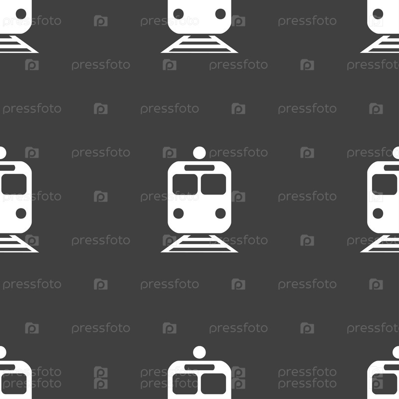 Поезд значок знак. Бесшовный узор на сером фоне. Вектор