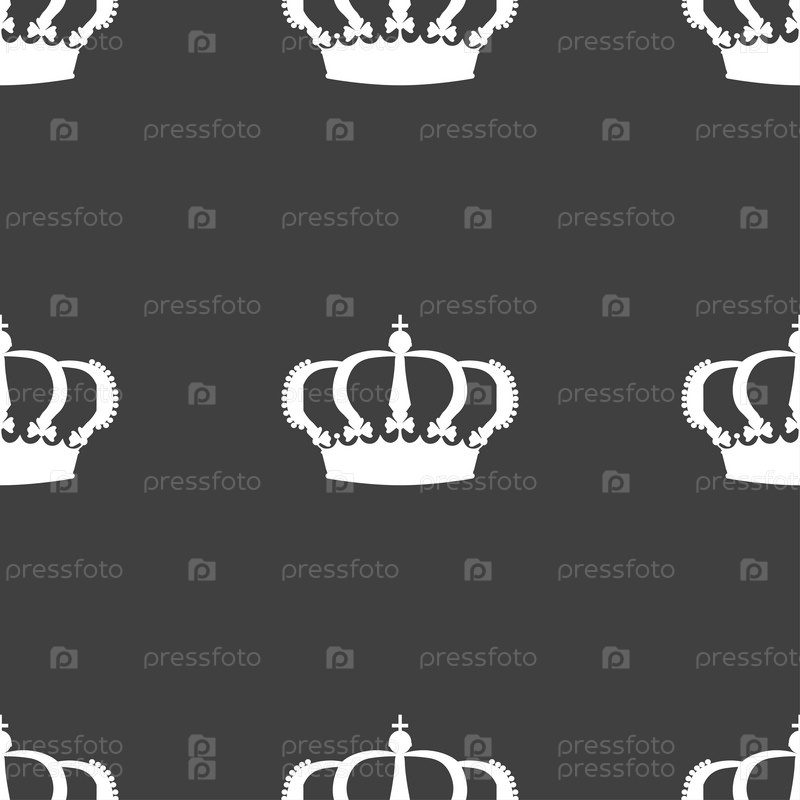 Корона значок знак. Бесшовный узор на сером фоне. Вектор