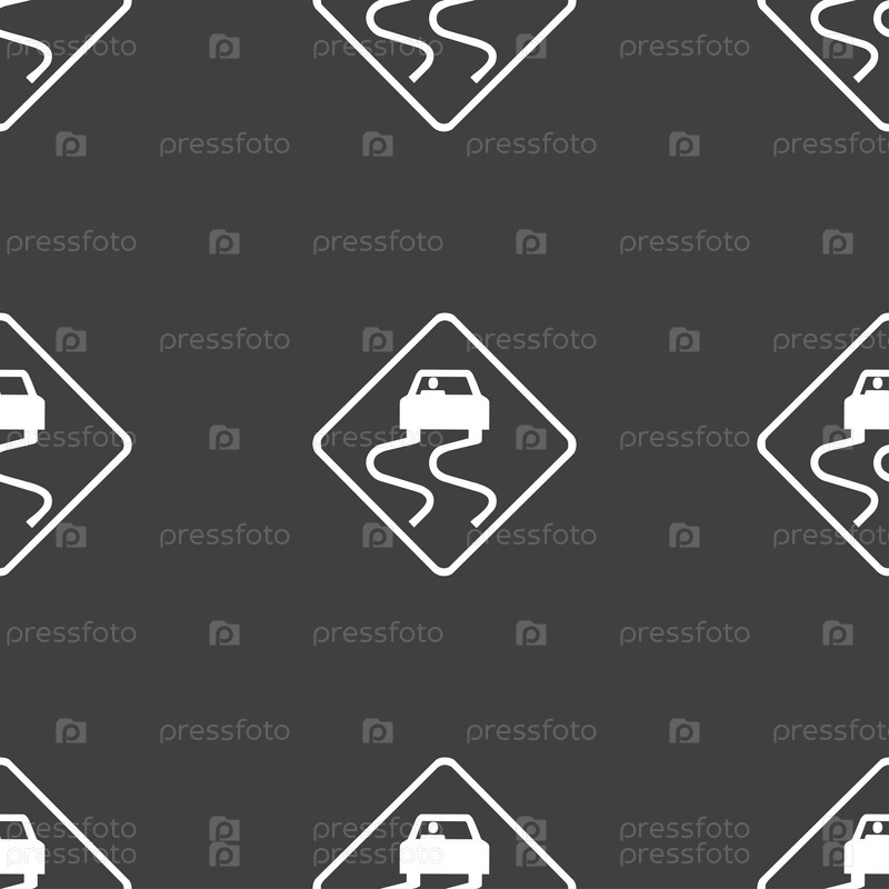 Дорожный знак скользкой значок. Бесшовный узор на сером фоне. Вектор