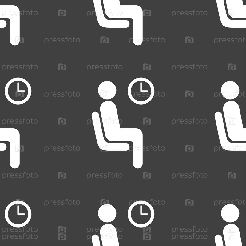 Ожидания значок знак. Бесшовный узор на сером фоне. Вектор