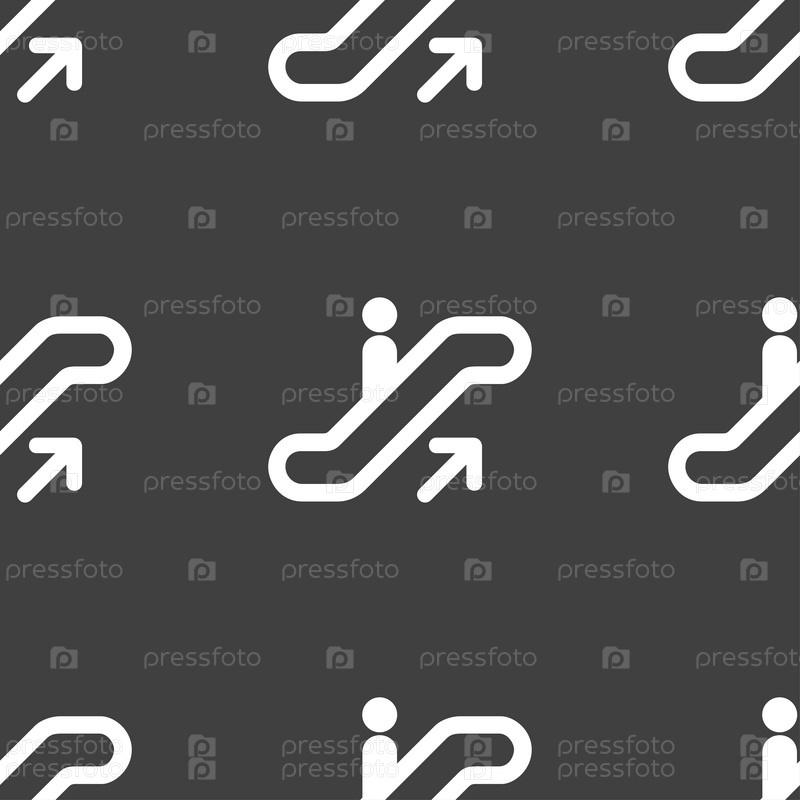 Лифт, эскалатор, лестница значок знак. Бесшовный узор на сером фоне. Вектор