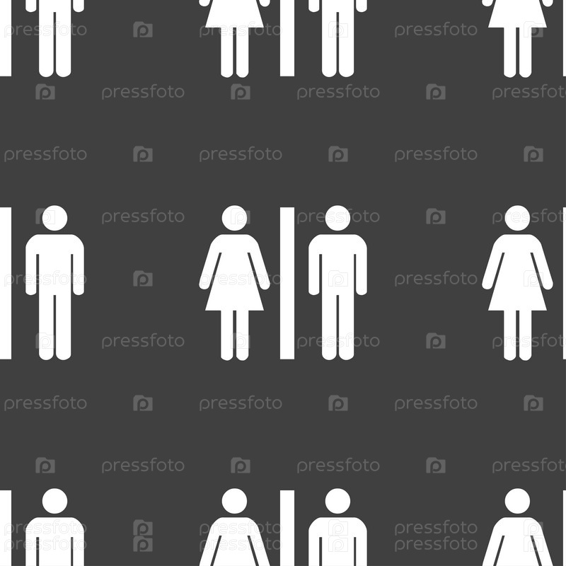 Силуэт мужчины и женщины значок знак. Бесшовный узор на сером фоне. Вектор