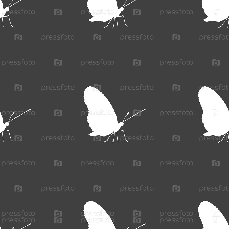 Бабочка значок знак. Бесшовный узор на сером фоне. Вектор