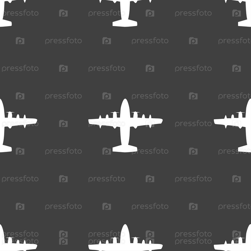 Самолет значок знак. Бесшовный узор на сером фоне. Вектор