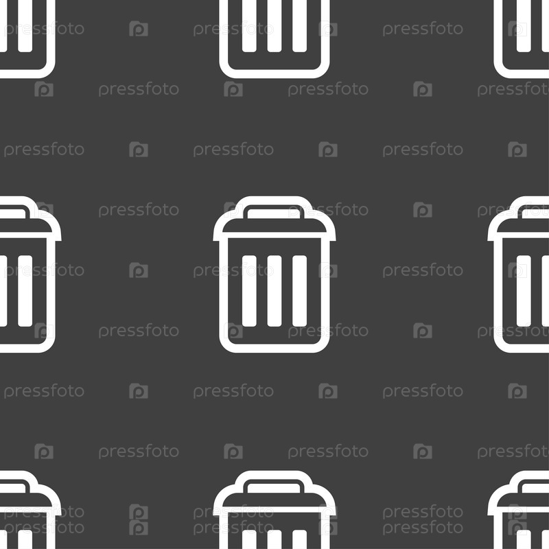 Знак значок корзины. Бесшовный узор на сером фоне. Вектор