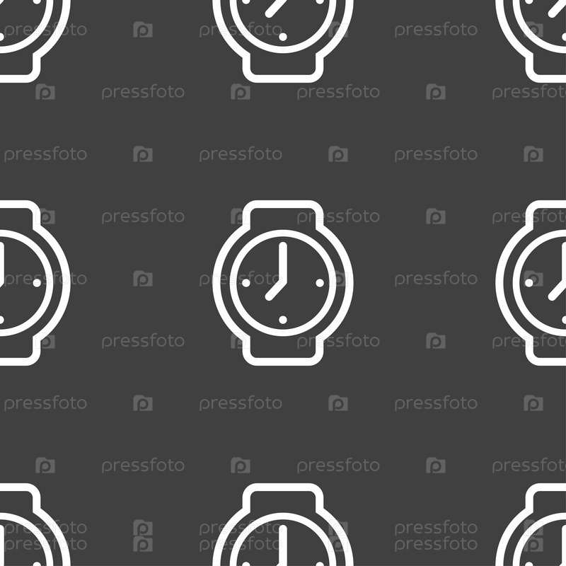 Часы значок знак. Бесшовный узор на сером фоне. Вектор
