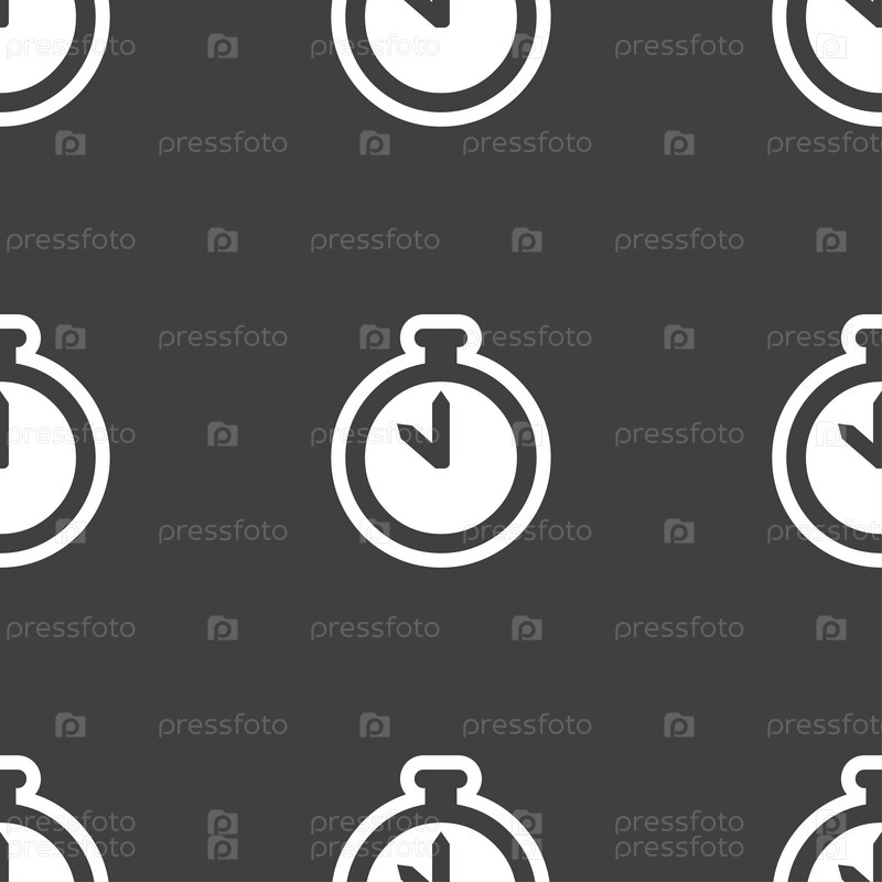 Секундомер значок знак. Бесшовный узор на сером фоне. Вектор