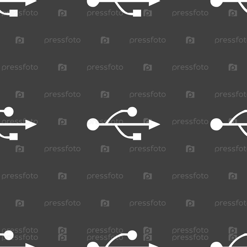 Изображение значка USB. Бесшовный рисунок на сером фоне. Вектор