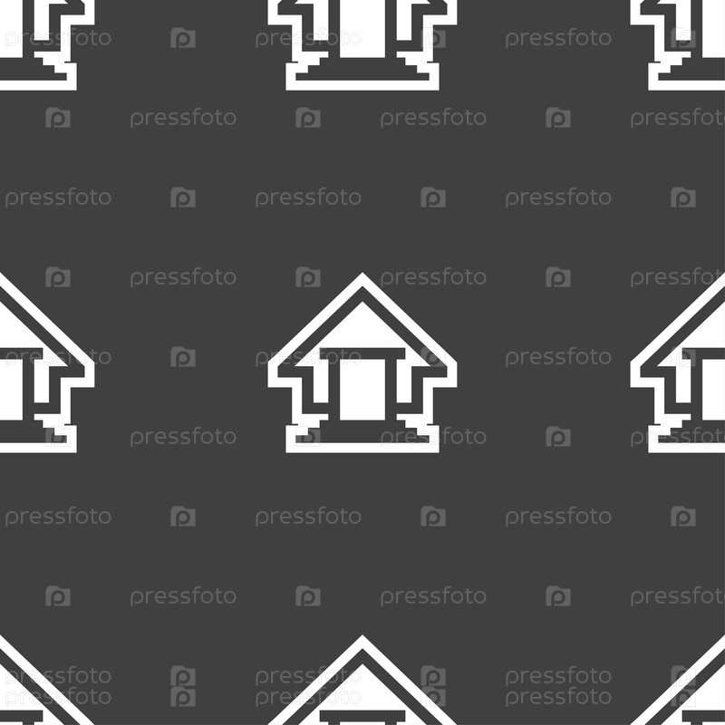 Дом значок знак. Бесшовный узор на сером фоне. Вектор
