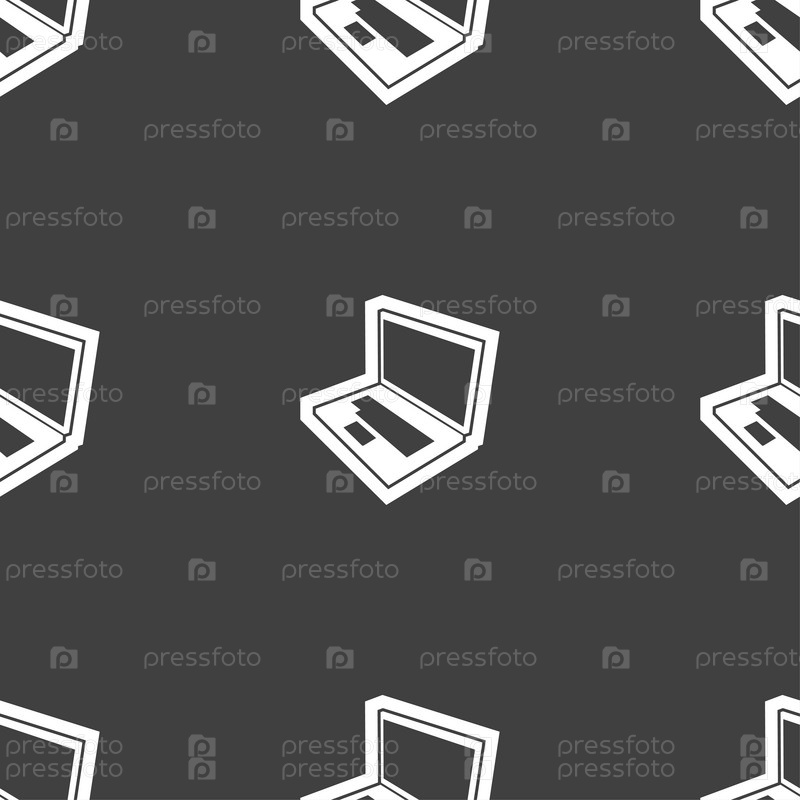 Ноутбук значок знак. Бесшовный узор на сером фоне. Вектор