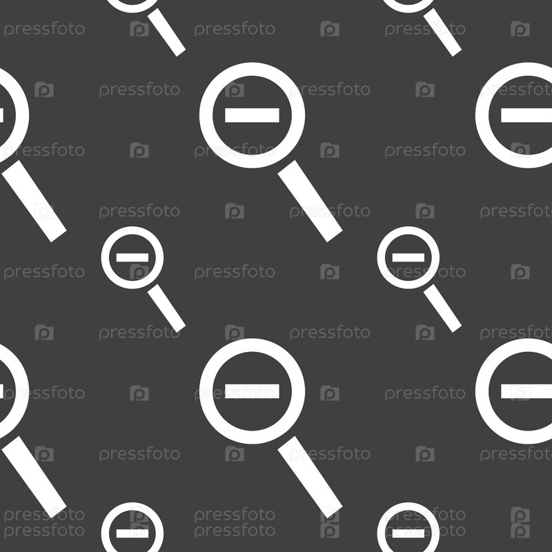 Лупа стекла, зум инструмент значок знак. Бесшовный узор на сером фоне. Вектор